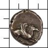 Pegasos nach rechts, unten Ϙ (koppa). |