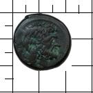 Kopf des Zeus mit Lorbeerkranz nach rechts, links Blitzbündel, in Perlkreis. |