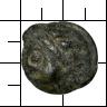 Stilisierter Kopf mit Binde (Tänie) nach links. |
