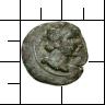 Unbärtiger Kopf nach rechts in Perlkreis. |